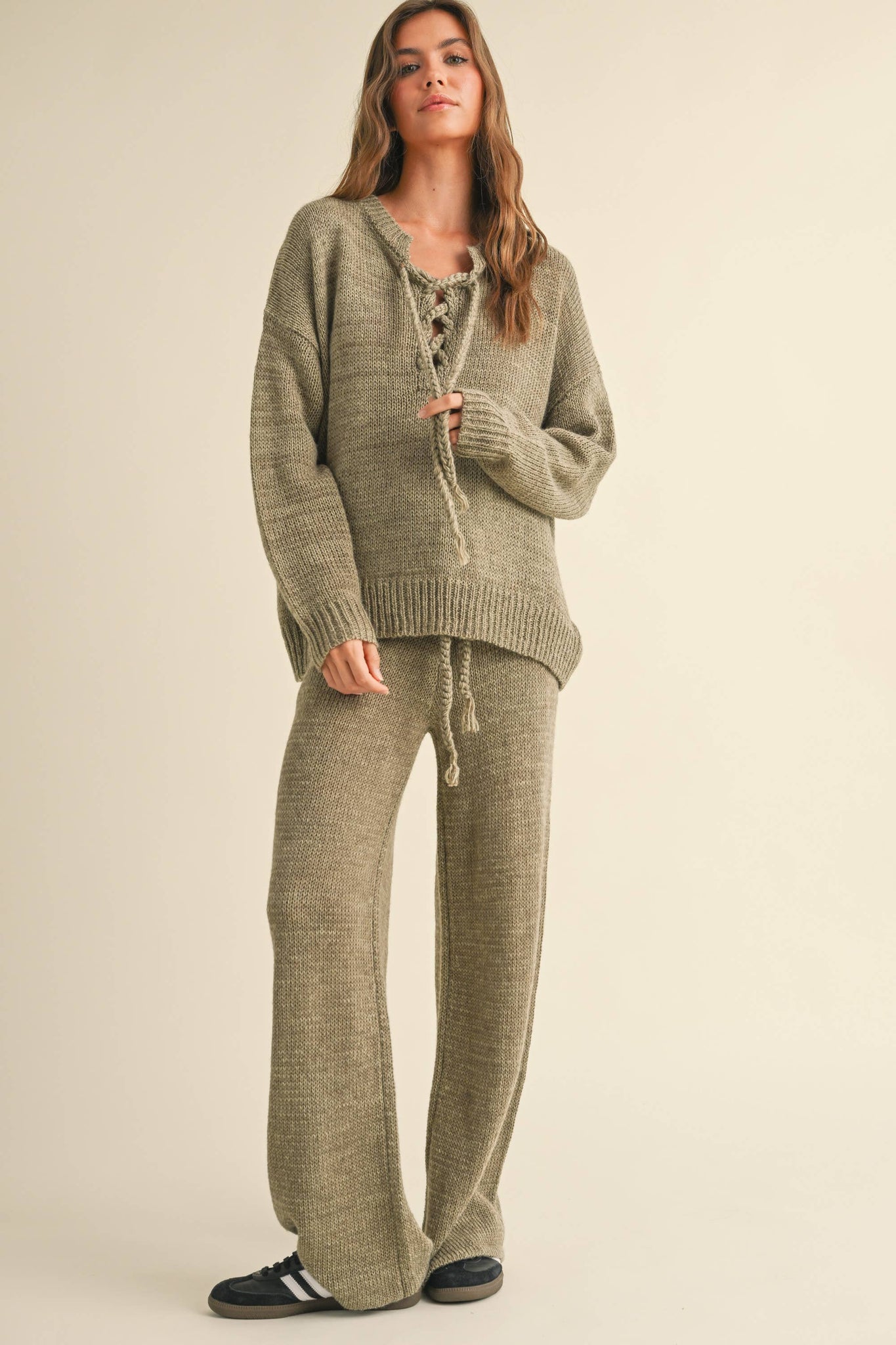 LACE-UP FRONT SWEATER TOP Size & Fit * * * * * * * * * * * * * * * * Model is wearing size S Measurements taken from size S Height - 5' 7 1/2" / 175.3CM 33(Bust) - 24(Waist) - 34(Hips)