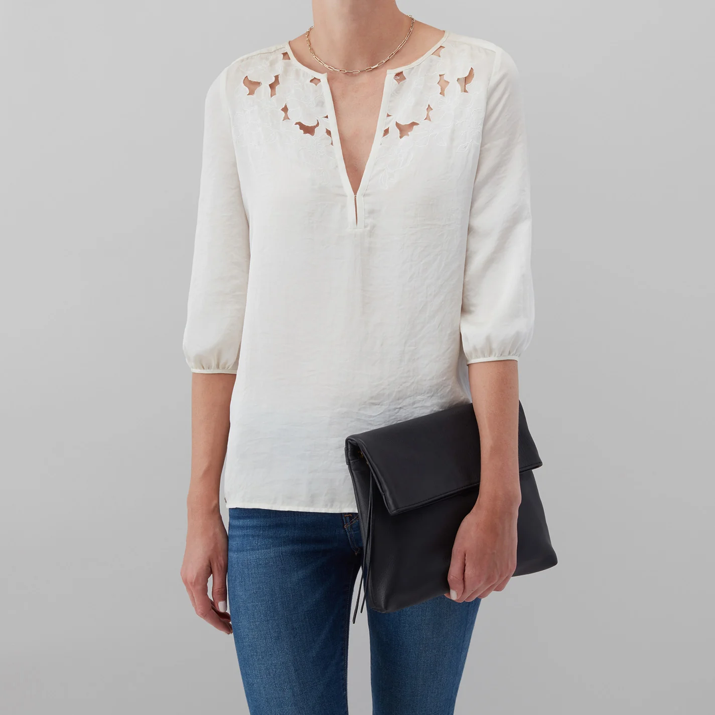 Our take on the classic foldover crossbody that can also double as an oversized clutch.