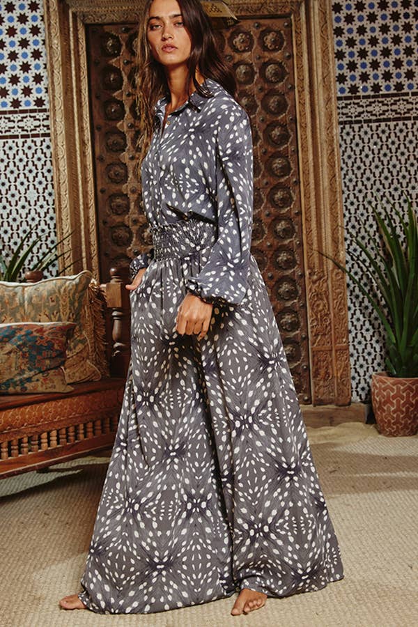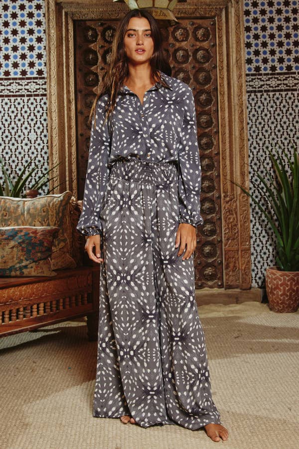 Multi Printed Smocked Waist Maxi Pants with Side Pockets - High-rise style - Side pockets and wide leg - Pleating throughout - Soft lightweight woven fabrication