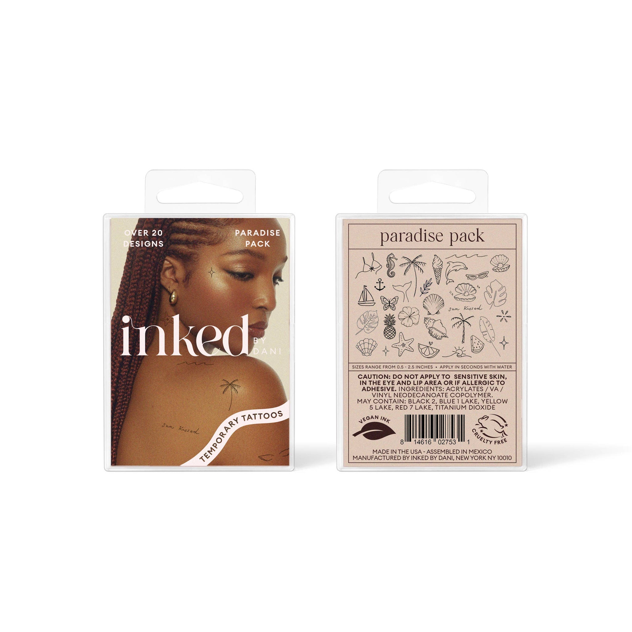 NEW! Transport yourself to a tropical getaway with our Paradise Pack, featuring over 40 minimal black-ink designs inspired by beach days, sunshine, and island vibes. -EASY TO APPLY WITH JUST WATER -HAND-DRAWN DESIGNS -VEGAN INK -CRUELTY-FREE INK -NON-TOXIC INK -WATERPROOF INK -SIZES RANGE FROM ½ INCH TO 2 INCHES -MADE IN THE U.S.A. -LASTS A FEW DAYS UP TO 2 WEEKS