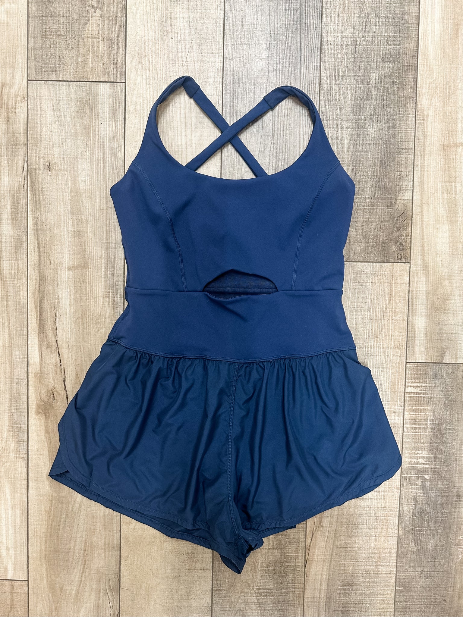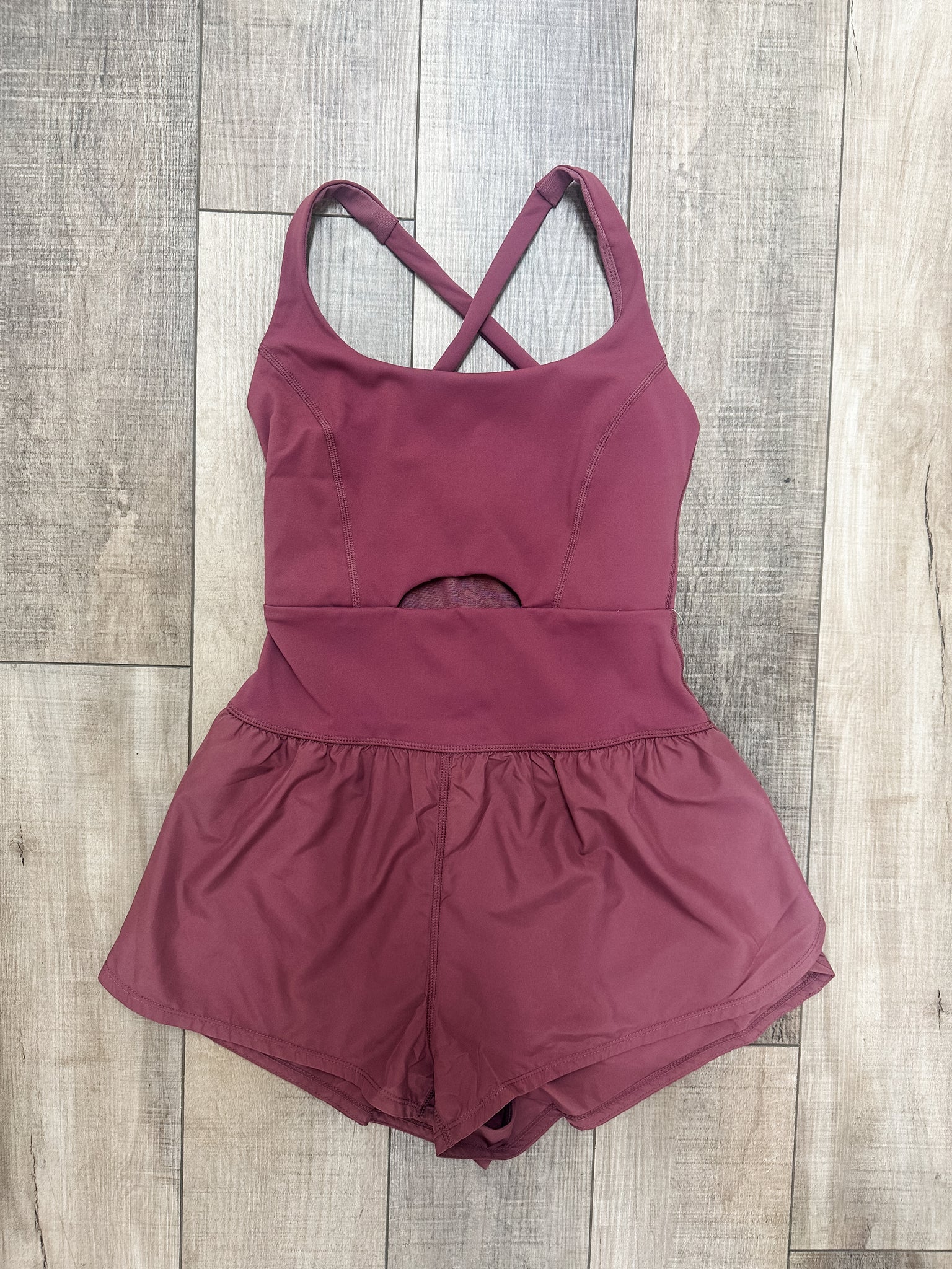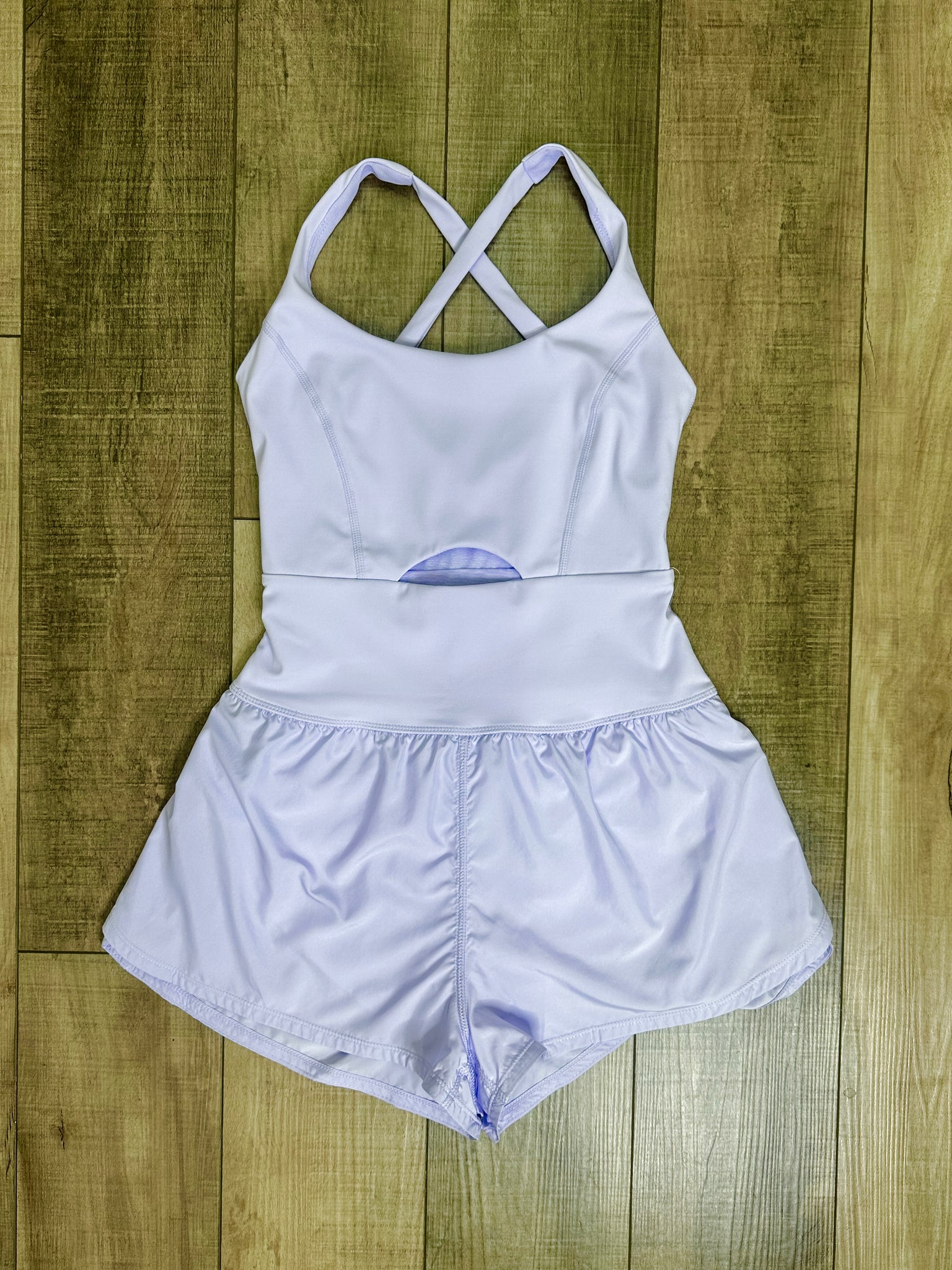 The perfect one-and-done running outfit, this easy romper features a slim-fitting top with a cooling cutout at the center paired with airy retro-style shorts.