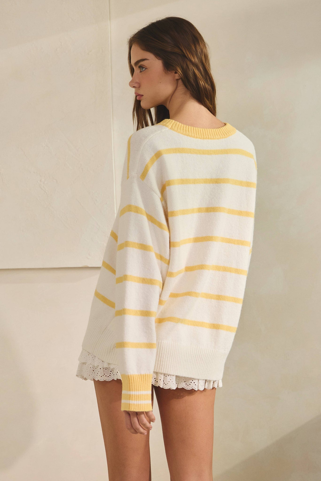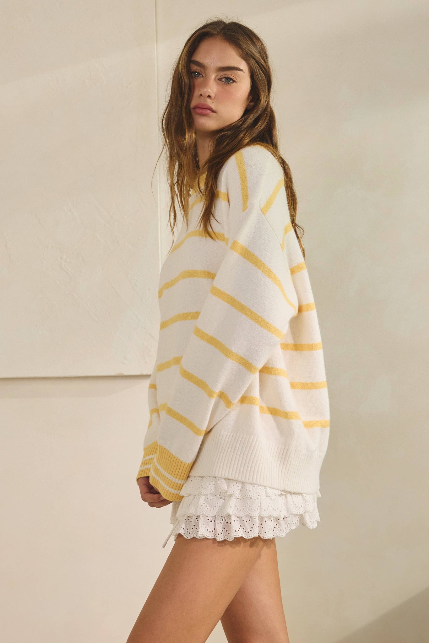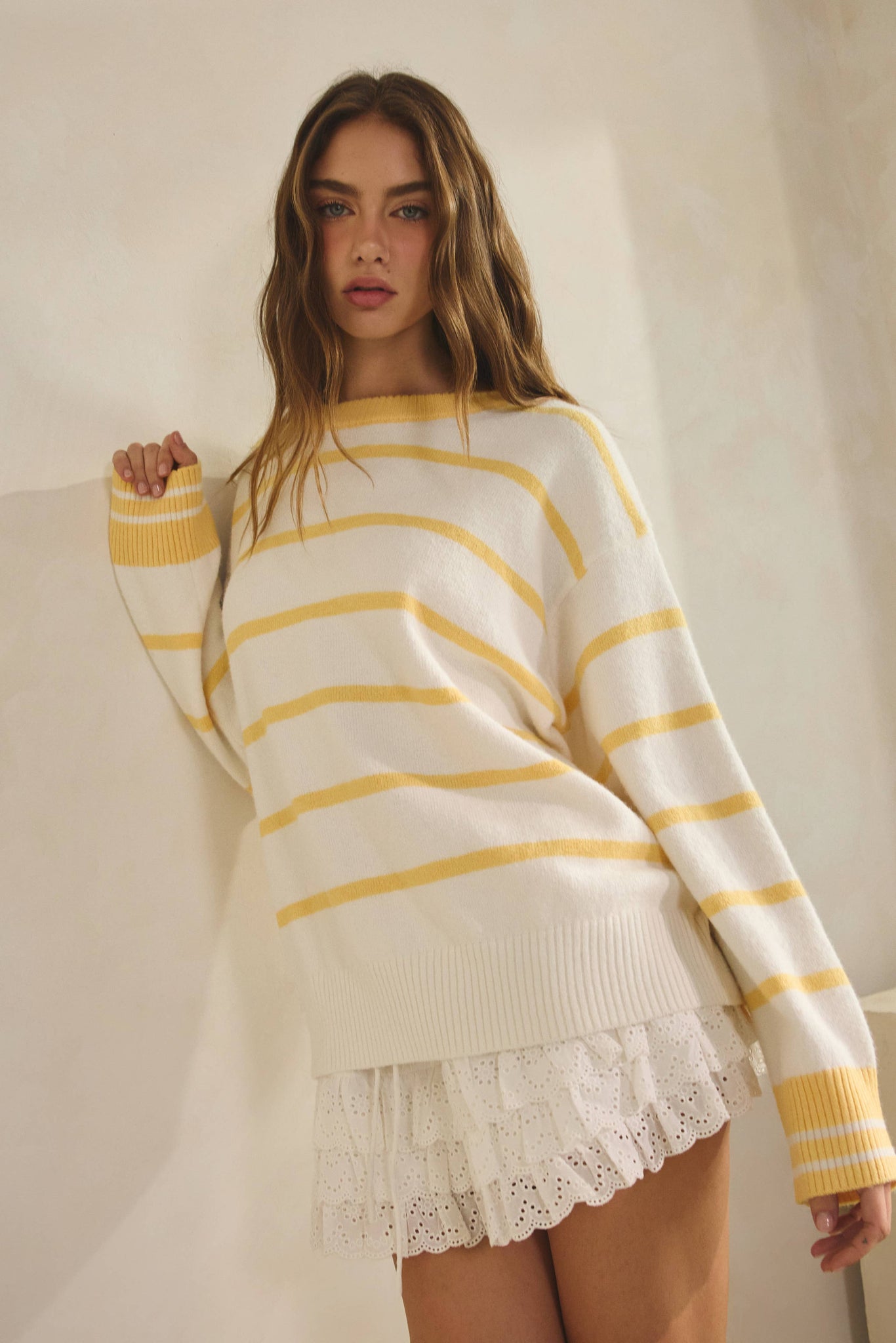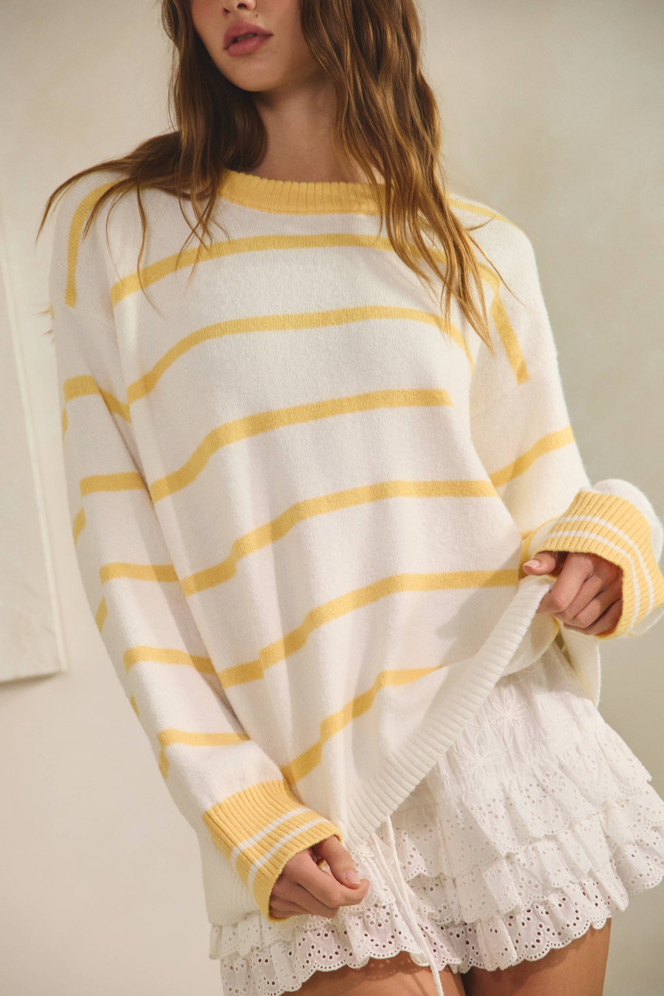 Oversized Striped Sweater -Elasticated waist -Crew Neckline -Striped Pattern -Ribbed and Striped Hems -Imported Model\\'s height is 5\\' 10\\" and wearing a size S 82% POLYESTER 15%ACRYLIC 3%SPANDEX