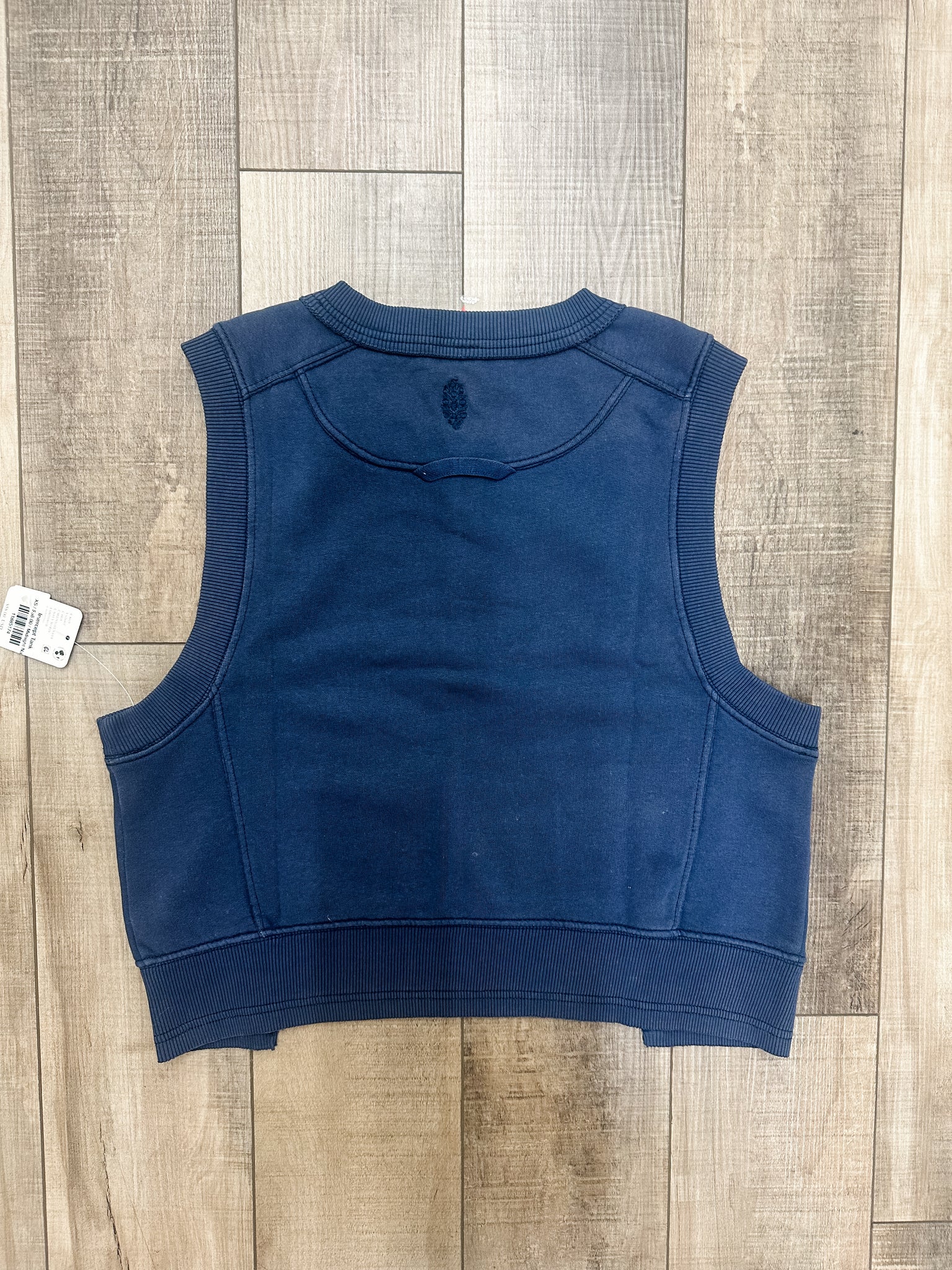 Features: Warm, soft fabrication; sleeveless; crew neck; boxy fit; hits right at hip; ribbed collar and hem detail