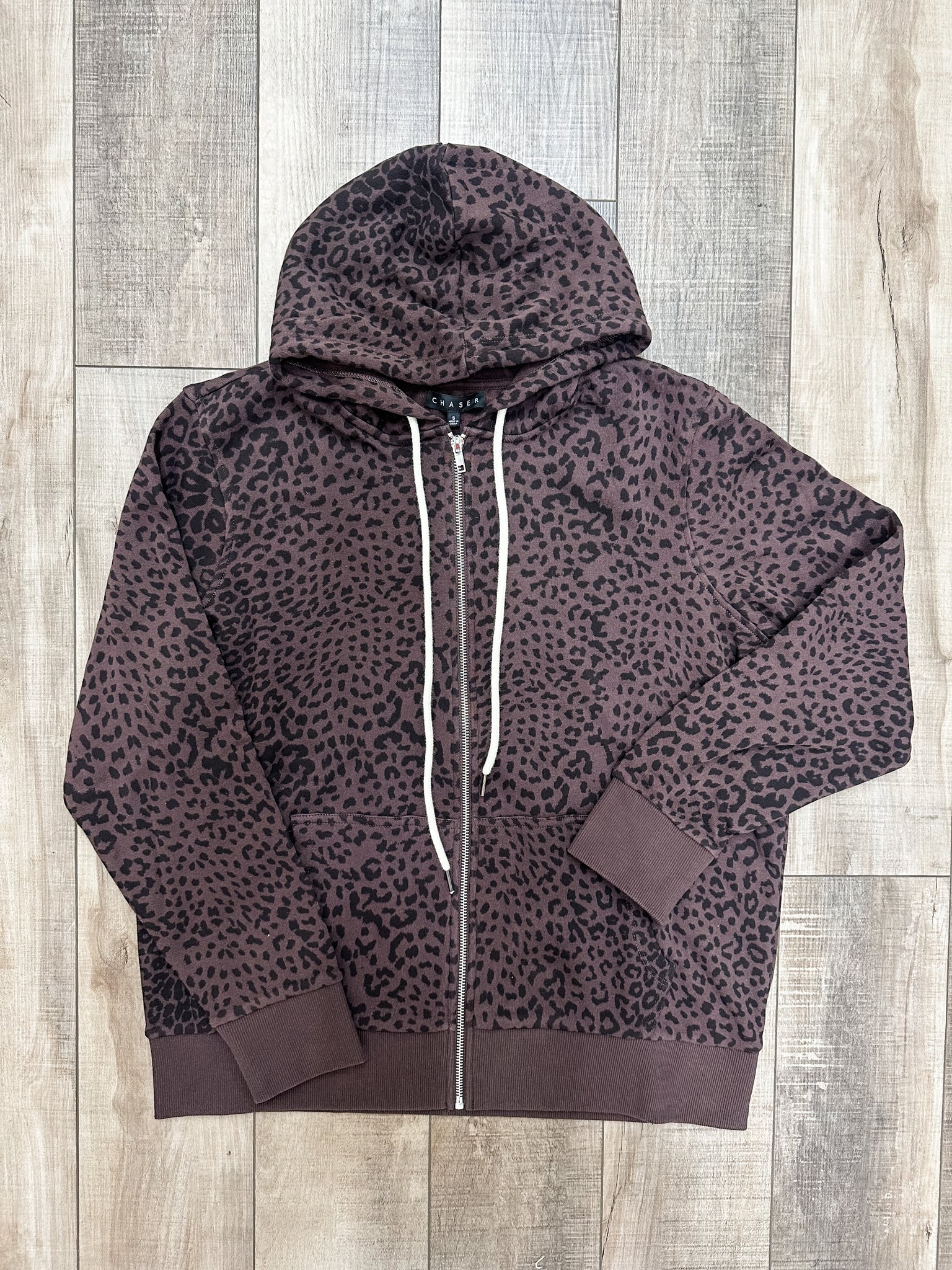 COTTON FLEECE LOUNA ZIP UP in leopard love color by Chaser Brand