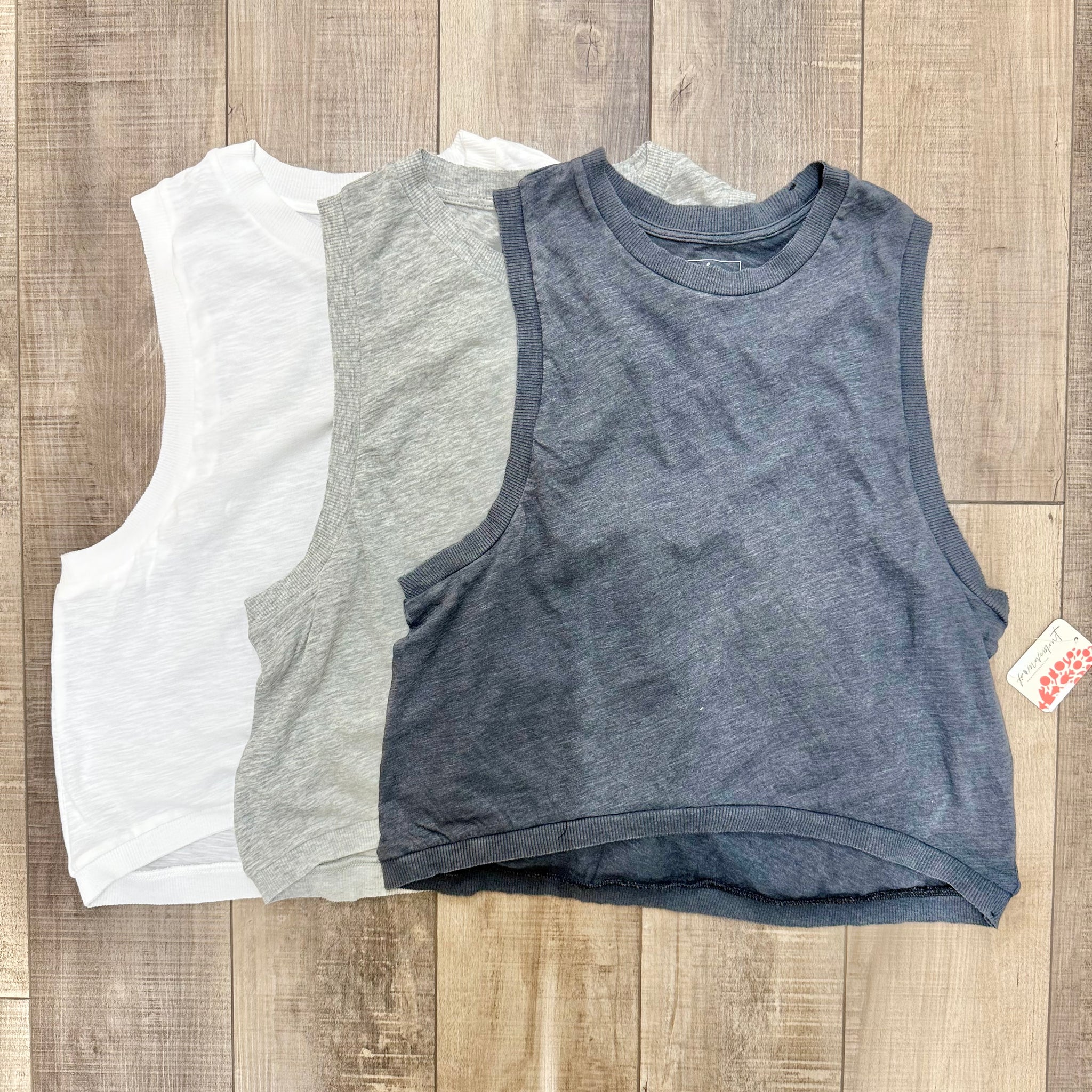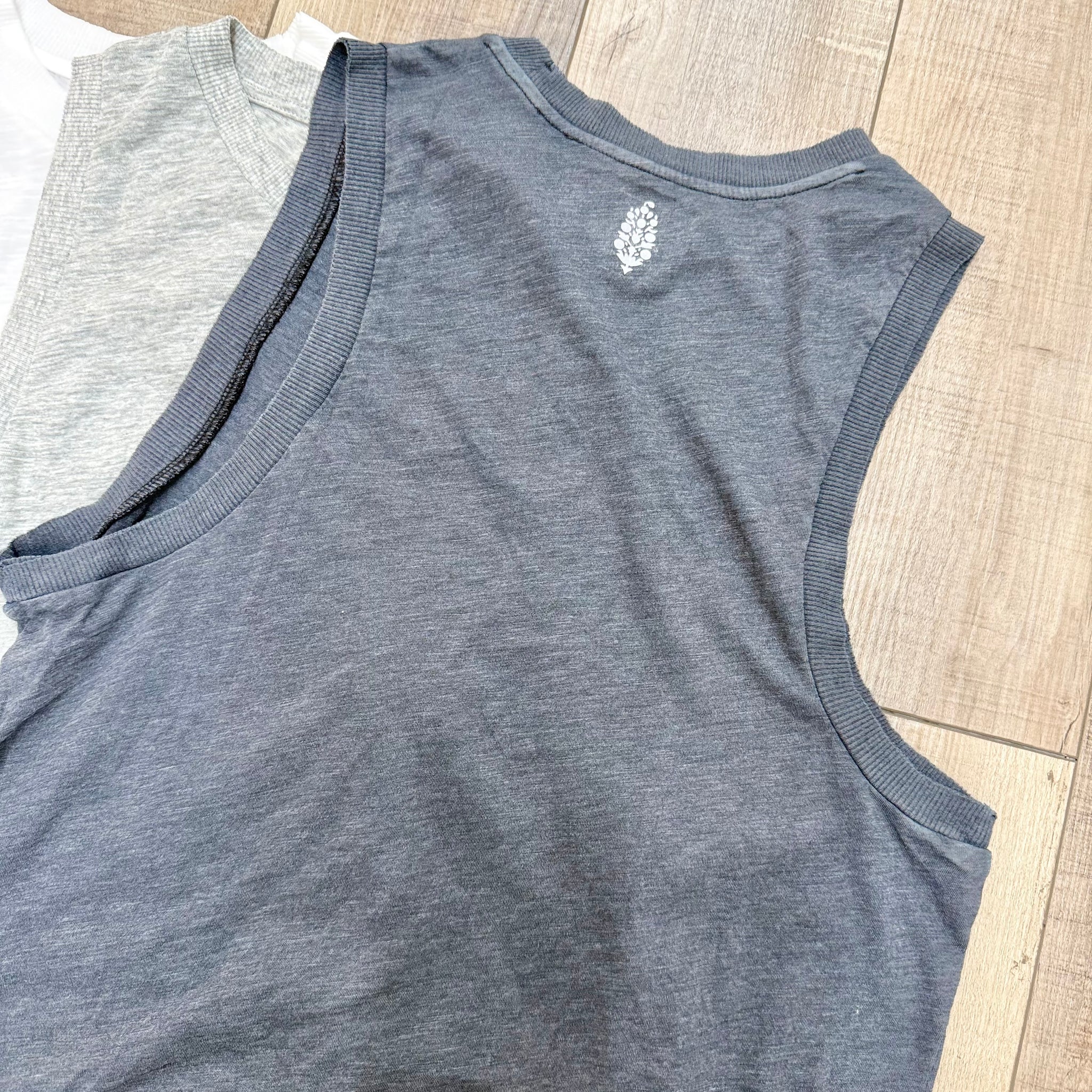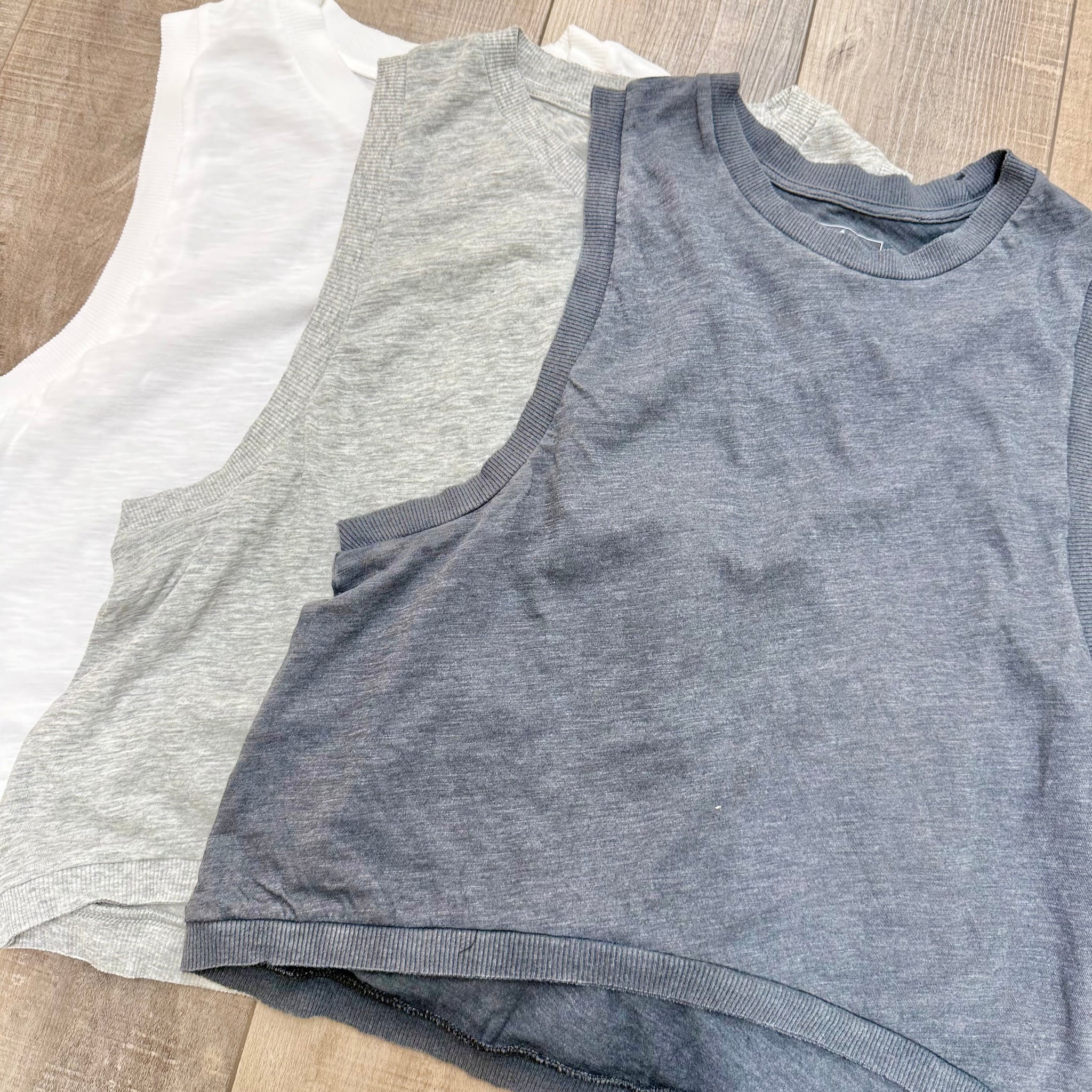 cropped silhouette with ribbed hemlines and dropped armholes.